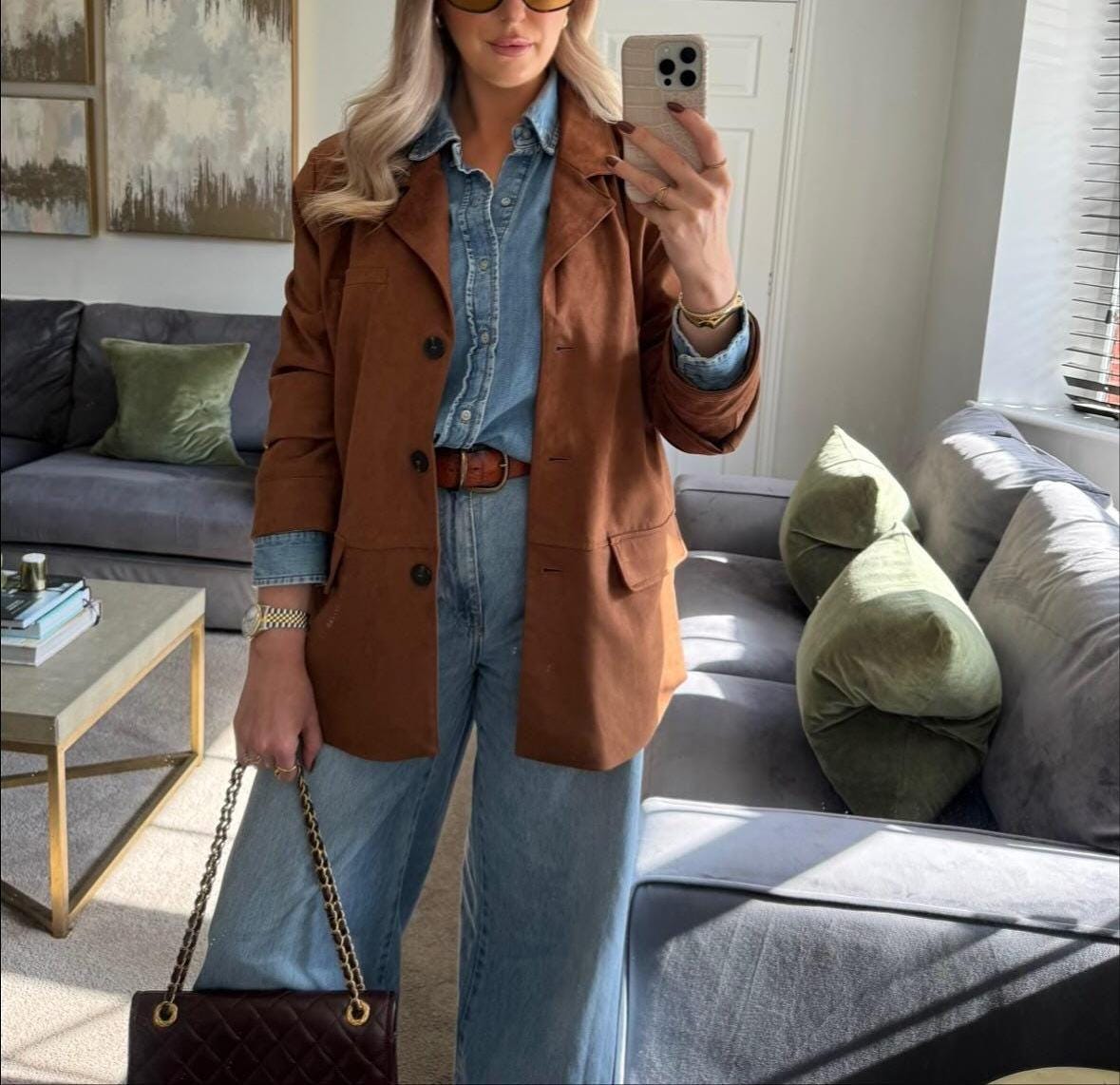 This brown suede leather blazer is the ultimate blend of vintage flair and contemporary polish. Pair it with high-waisted jeans, a silk blouse, and ankle boots for a laid-back yet sophisticated everyday look, or drape it over a slip dress for effortless evening elegance.