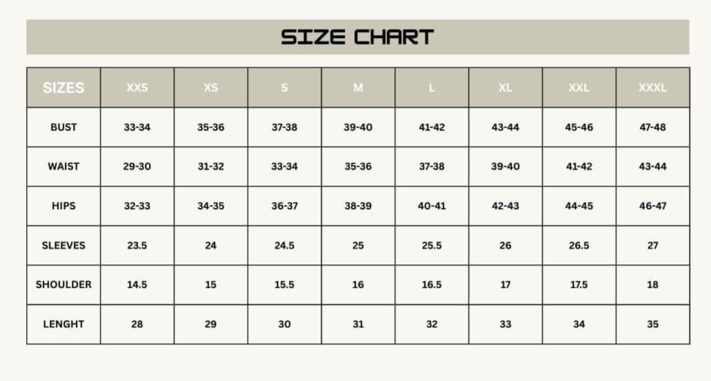 Sizes Available: XXS–3XL with custom sizing available on request for a perfect fit.